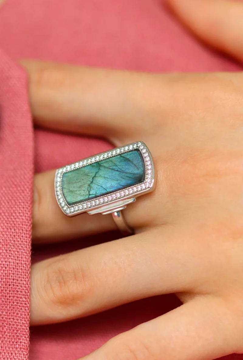 Bague Art Déco en argent et labradorite – Florentine