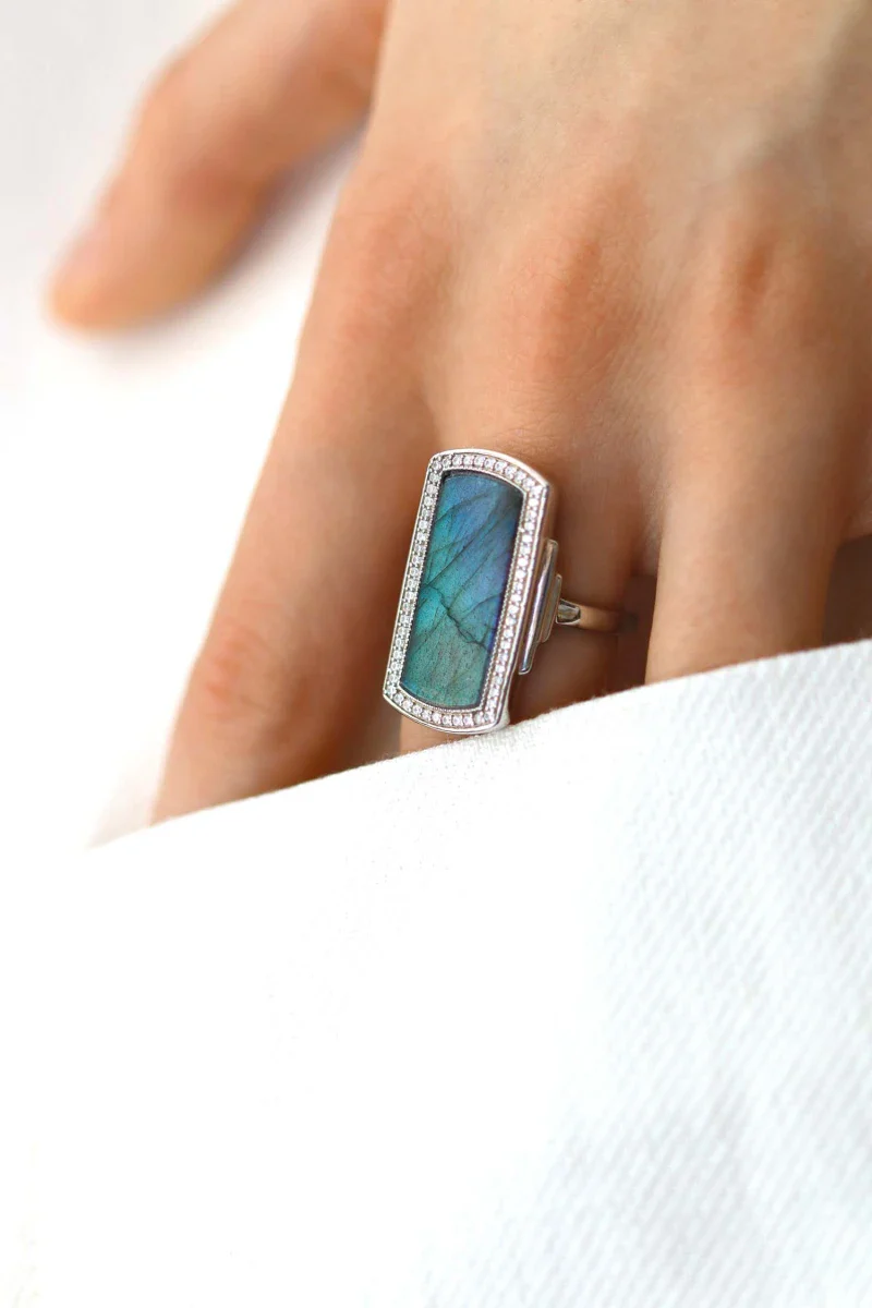 • Chaque labradorite est unique, rendant chaque bague singulière