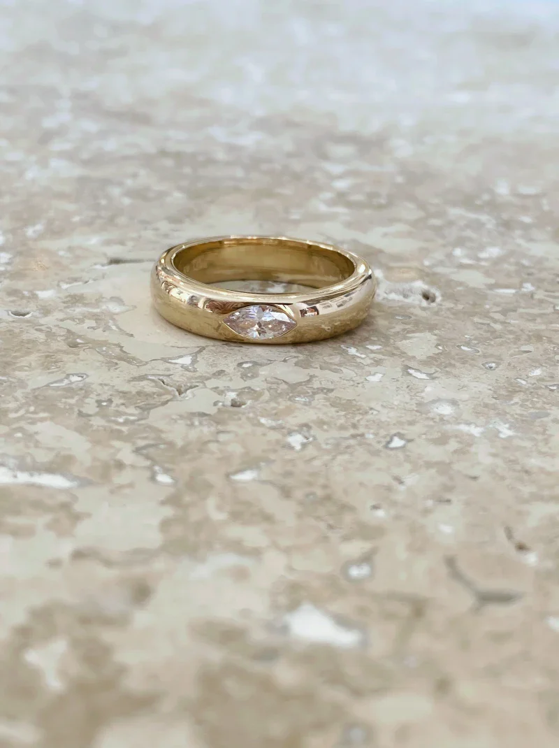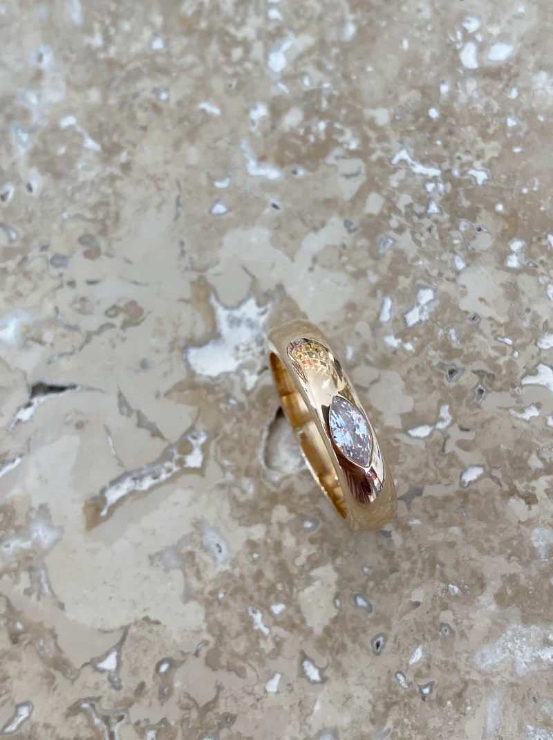 Bague « Pneu Navette » Dorée – en laiton plaqué or 750/000 & zircon navette