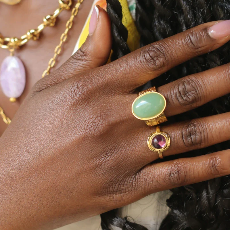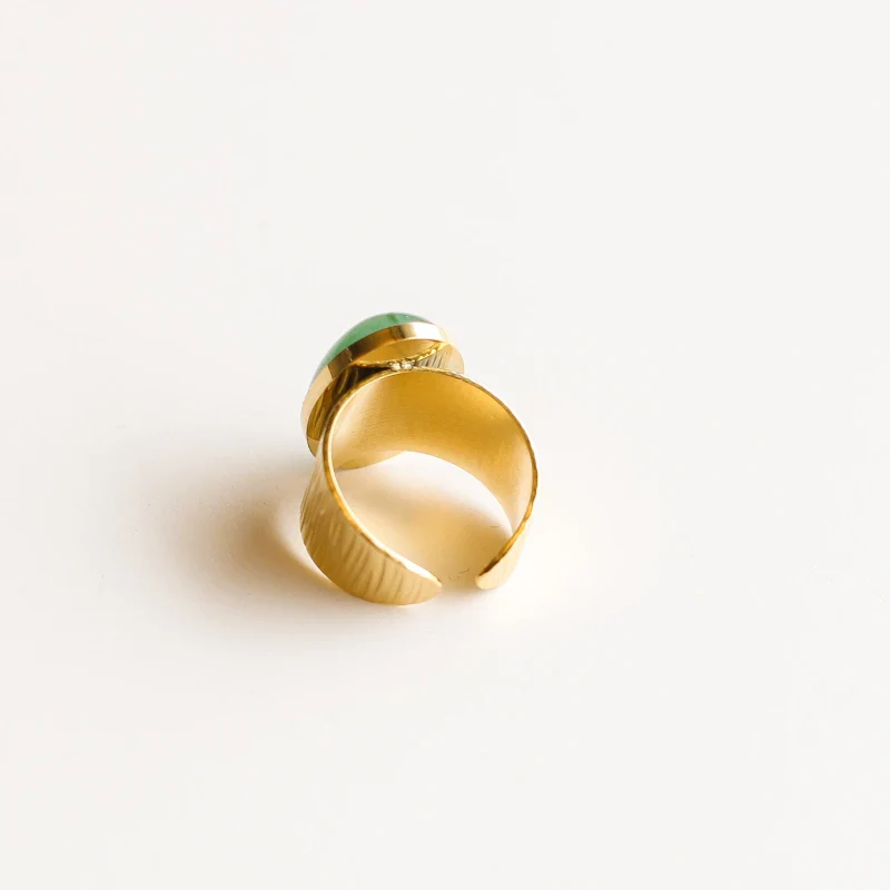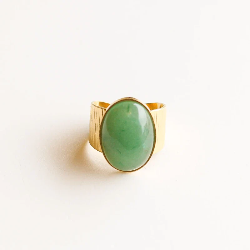 Bague Ajustable en Acier Inoxydable avec Pierre Naturelle d’Aventurine