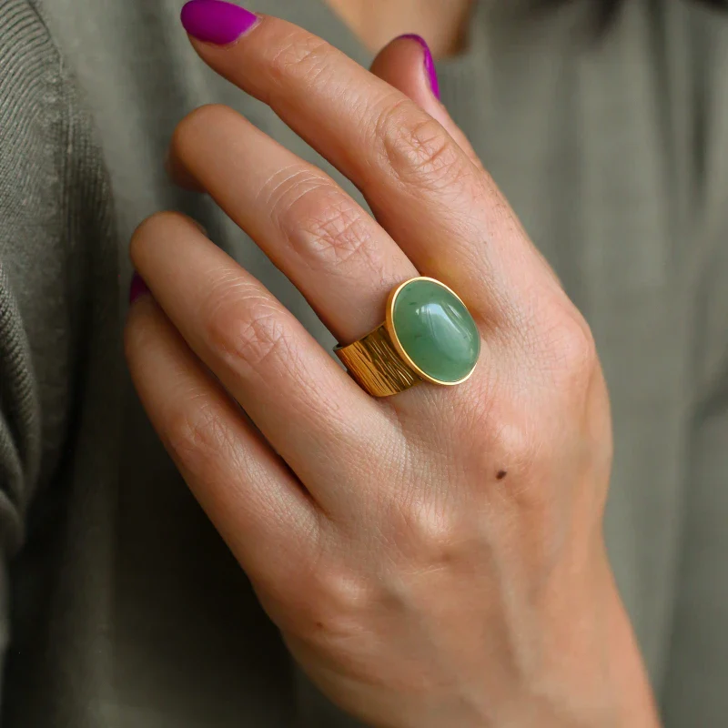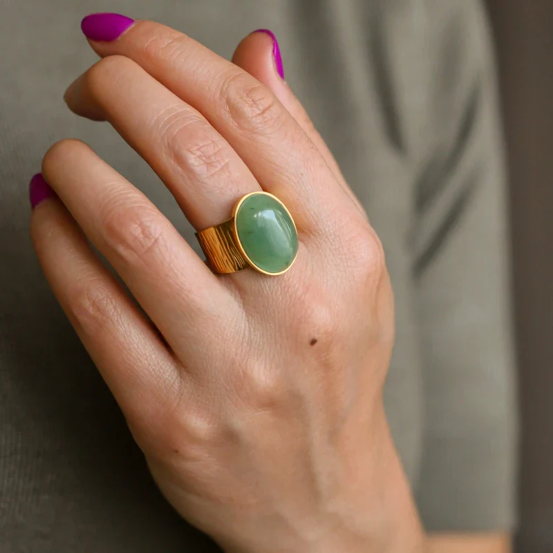 Bague grande martelée Aventurine