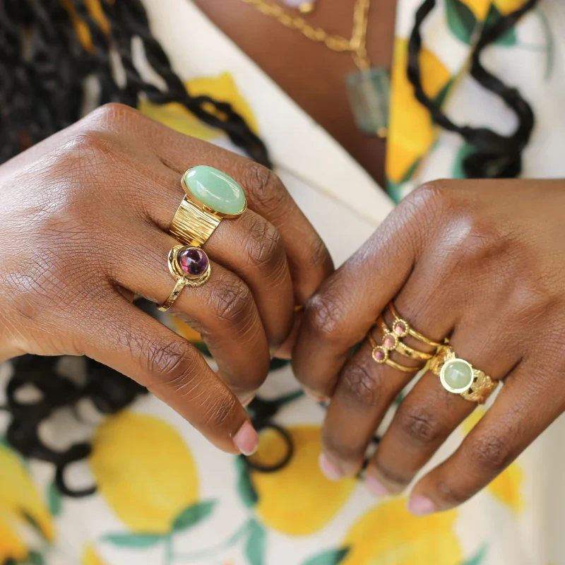 Chaque bague est façonnée à la main à Paris, utilisant des pierres fines 100% naturelles. Cela signifie que chaque pièce est unique avec des variations possibles dans l’apparence de la pierre. La sélection minutieuse de chaque pierre pour son reflet et son caractère distinctif garantit un bijou qui vous ressemble vraiment.