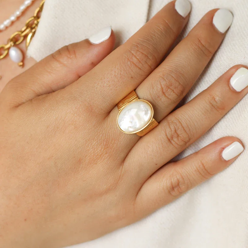 Découvrez cette bague en Nacre assemblée à la main à Paris par Christine, créatrice de Mahny Jewelry.