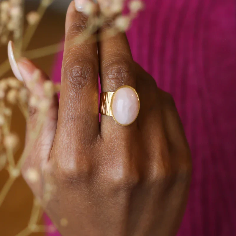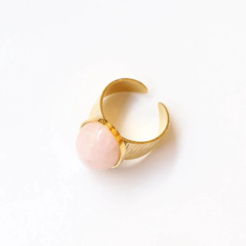 Découvrez cette bague en Quartz rose assemblée à la main à Paris par Christine, créatrice de Mahny Jewelry.