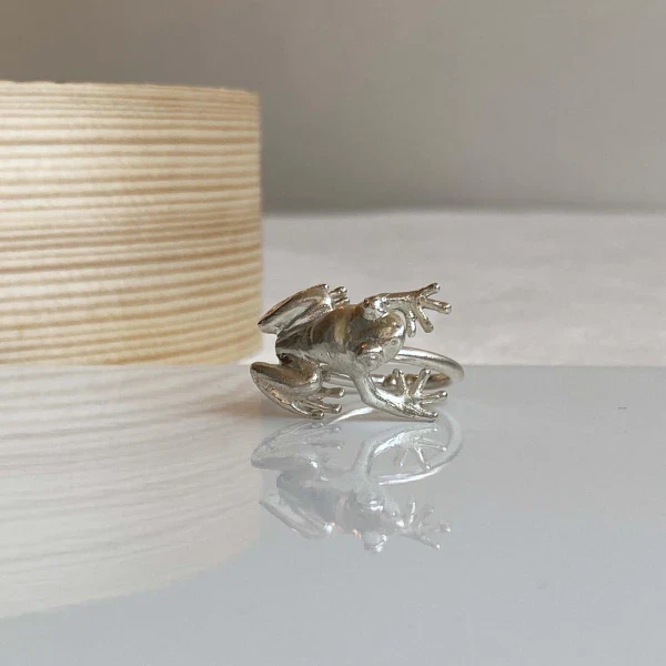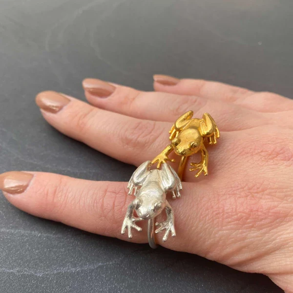 Bague trempé dans l’or ou de l’argent en forme de grenouille