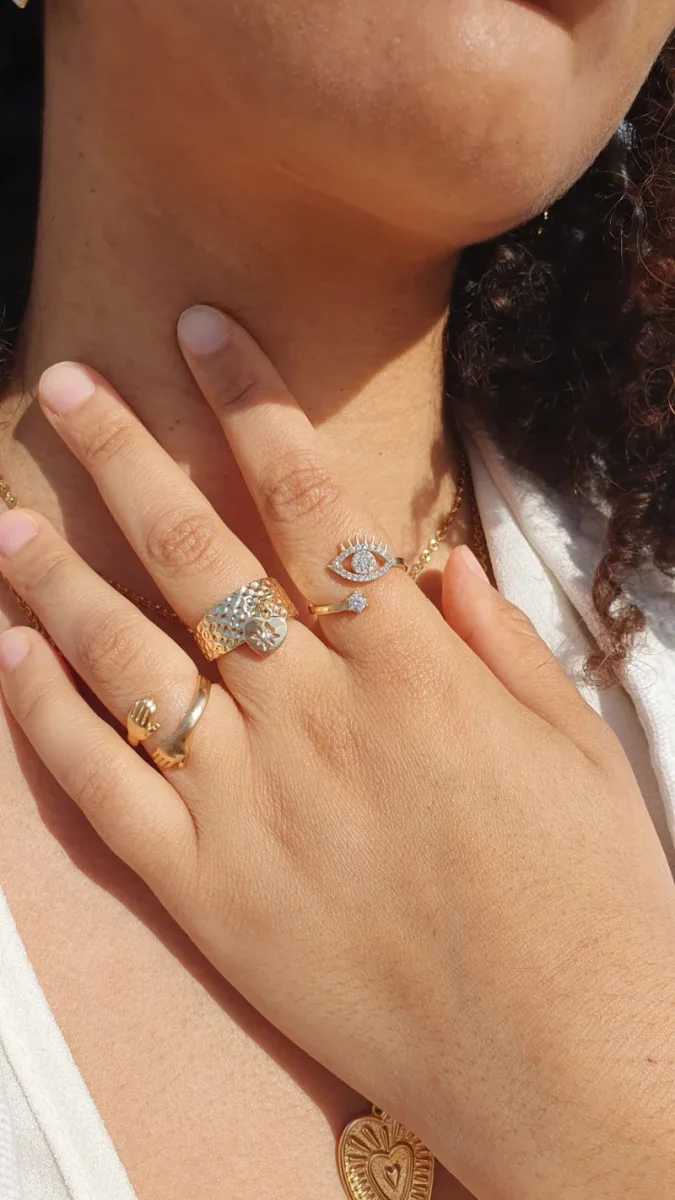 La marque imagine ce bijou comme un accessoire à la fois minimaliste et expressif, facile à porter seul ou à associer avec d’autres bagues fines pour créer une composition personnelle et raffinée.