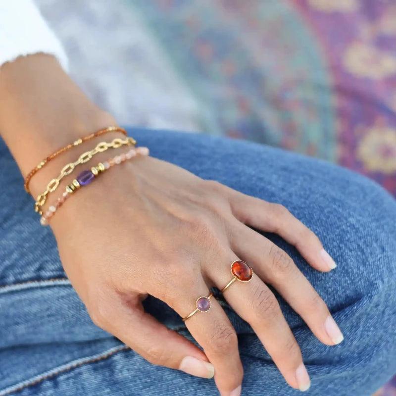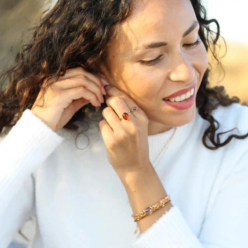 Les Pierres semi-précieuses sont naturelles et donc toutes différentes et uniques. L’apparence de la pierre du bijou que vous allez recevoir peux donc varier légèrement de la photo. De ce fait, elles sont toutes sélectionnées une à une par la créatrice pour leur reflet et caractère unique.