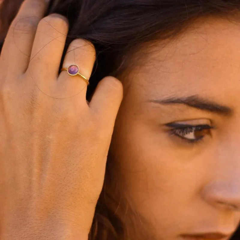 Découvrez cette petite bague en améthyste élégante, conçue pour s’adapter parfaitement à toutes les femmes grâce à sa taille ajustable. Fabriquée à la main par la créatrice Christine, elle met en valeur la beauté captivante de l’améthyste avec ses teintes profondes de violet. Sa structure est non seulement résistante mais aussi conçue pour durer, résistant à l’eau et aux épreuves quotidiennes. Pour assurer sa longévité, les réparations peuvent être effectuées gratuitement à la boutique, sans limite de temps, garantissant que cette bague reste un choix fiable et durable.