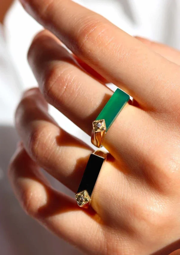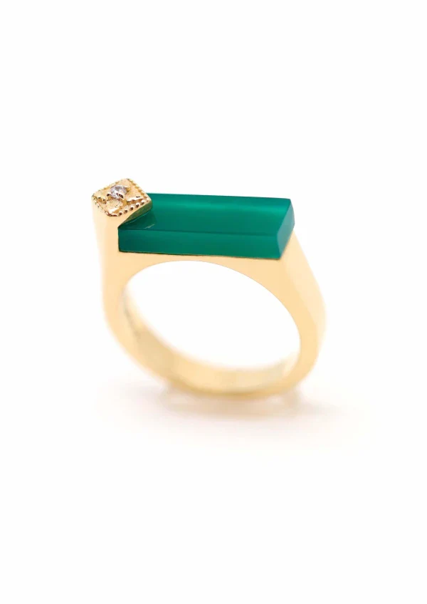 Bague plaqué or et Onyx vert rectangle I Louisette