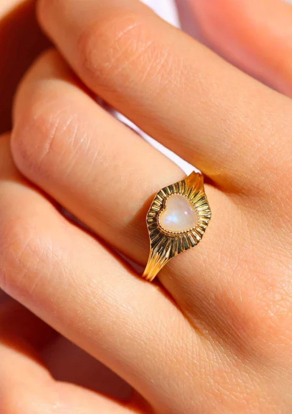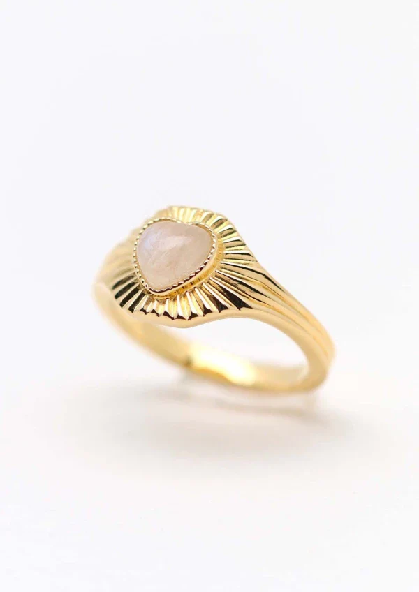 Bague plaqué or Pierre de lune en forme de cœur I Lucette