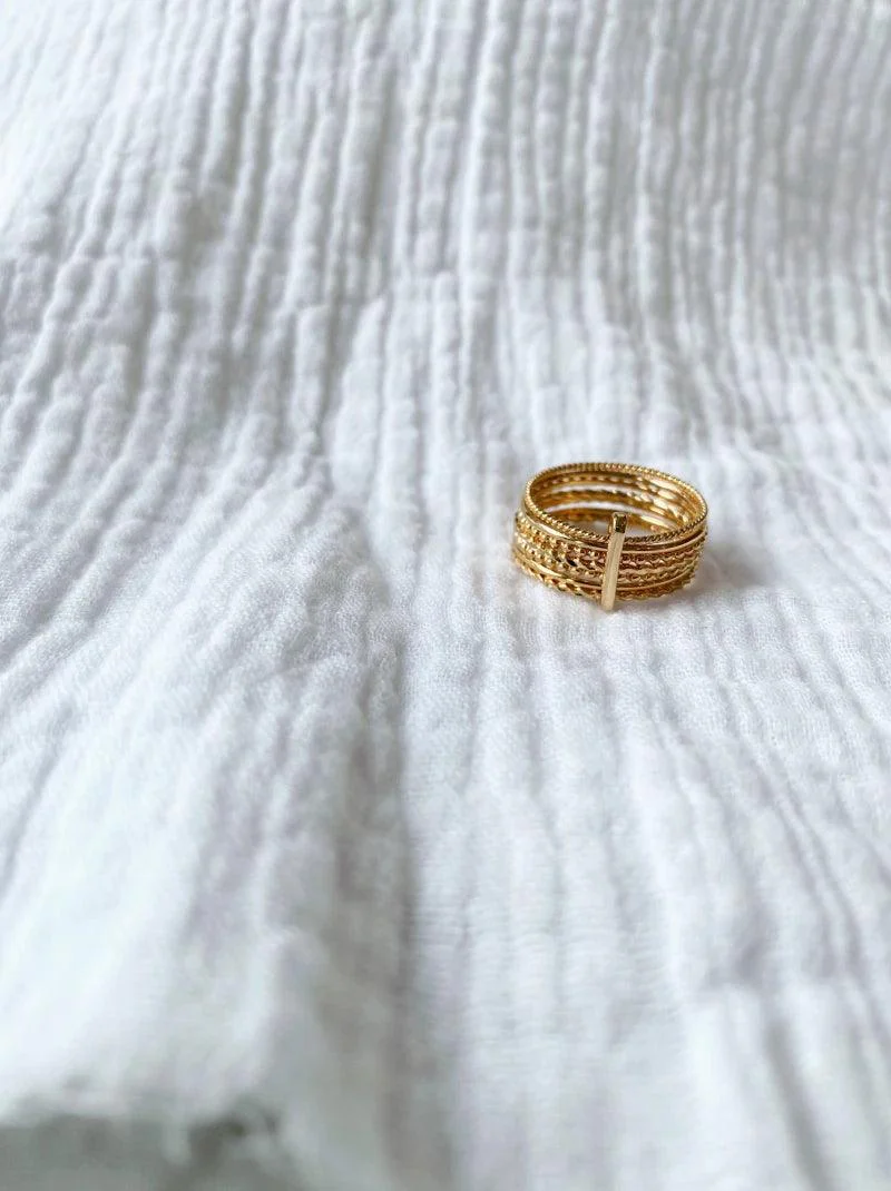 Découvrez la bague semainier dorée ou argentée Dolce, fabriqué en France avec des matériaux recyclés. Cette bague est le bijou parfait pour vous suivre tous les jours sans inquiétude mais aussi parfaite comme cadeau qui allie style et praticité.