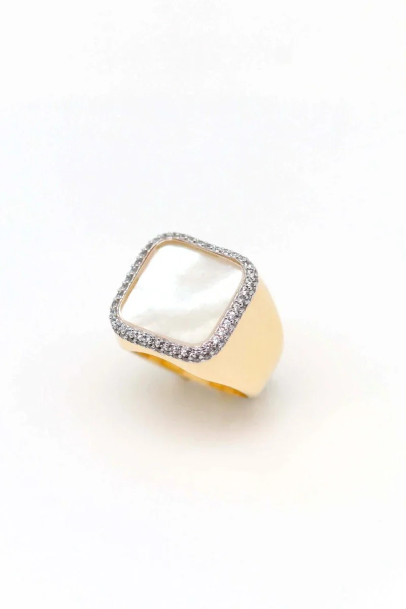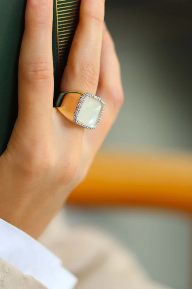 Découvrez la bague Séraphine, une magnifique interprétation moderne de la **chevalière**. Cette pièce unique allie finesse et caractère grâce à ses magnifiques courbes **arrondies** et à l’éclat captivant de la nacre, sublimée par des **oxydes de zirconium** étincelants. Parfaite pour les femmes qui aiment afficher leur **style** tout en affirmant leur personnalité.