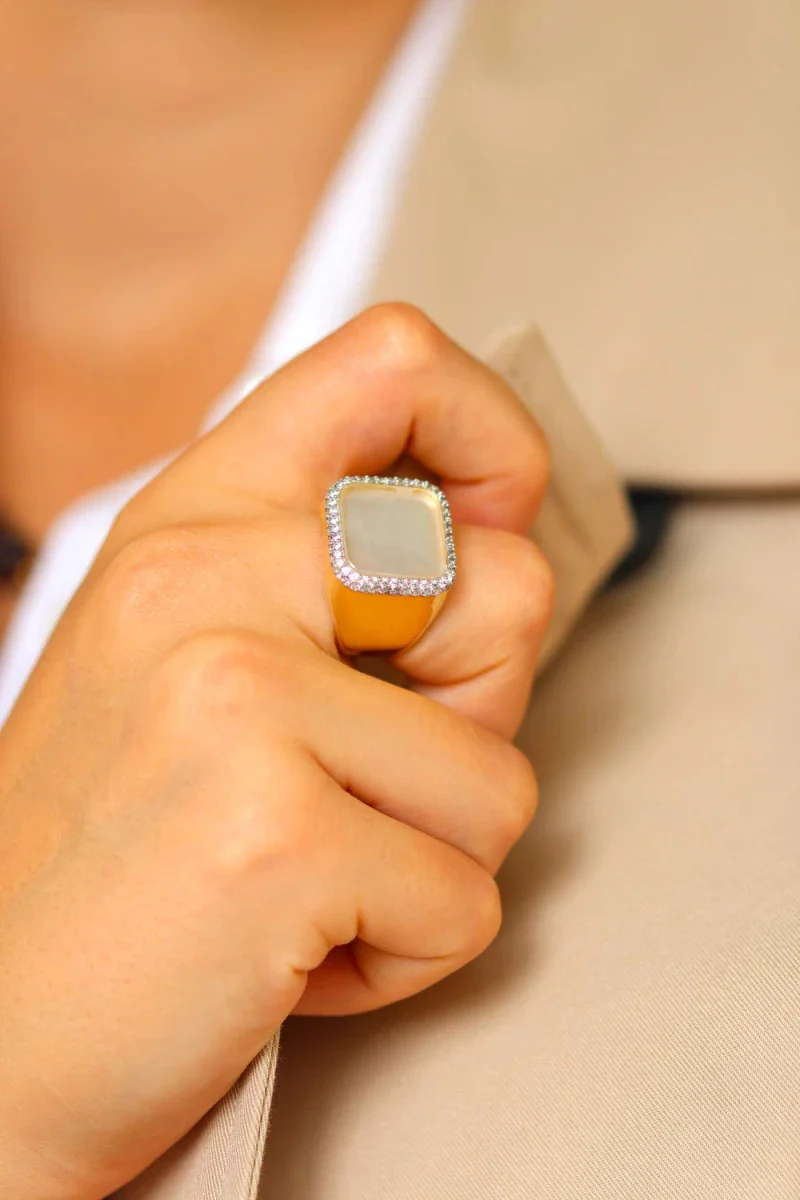 Bague ovale Calcédoine d’eau plaqué or – Antoinette