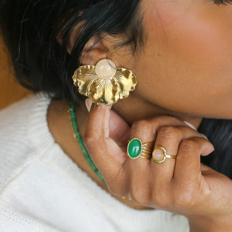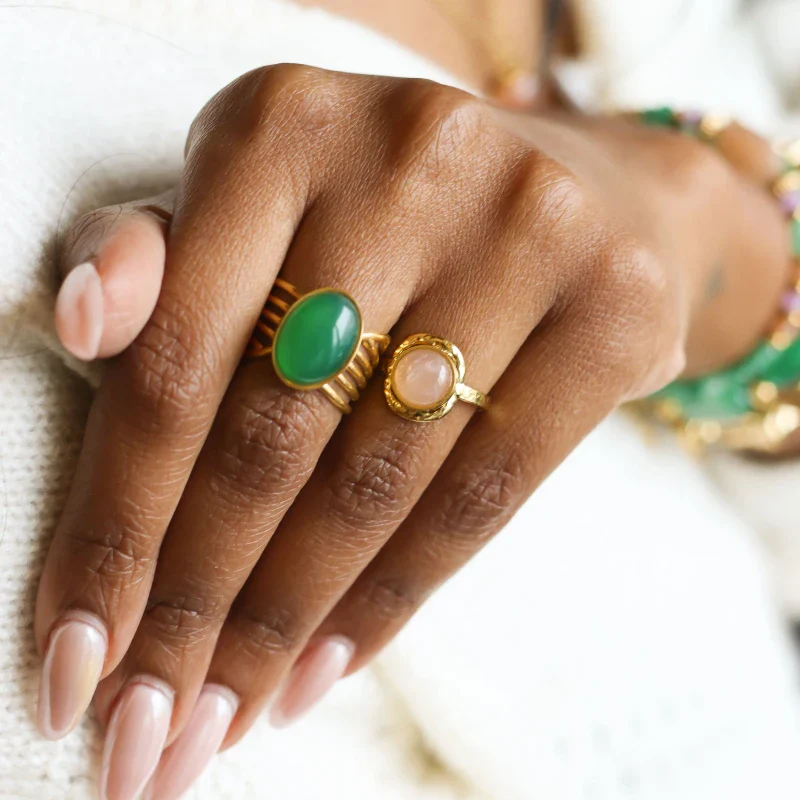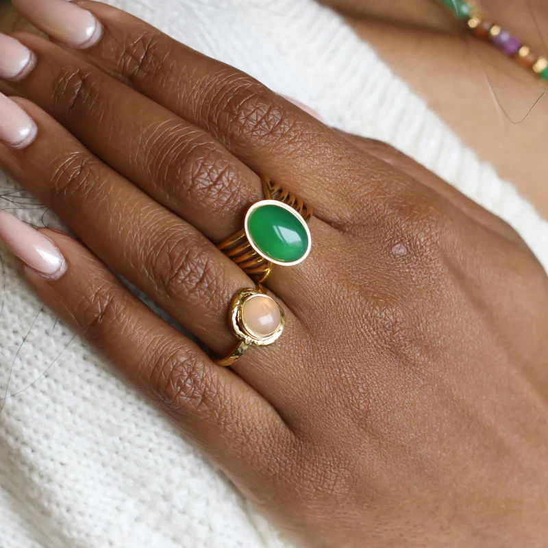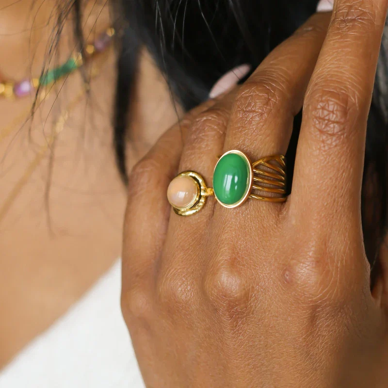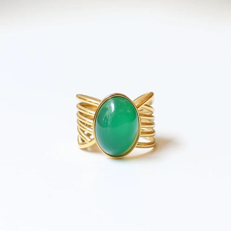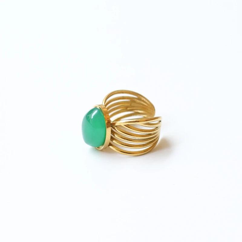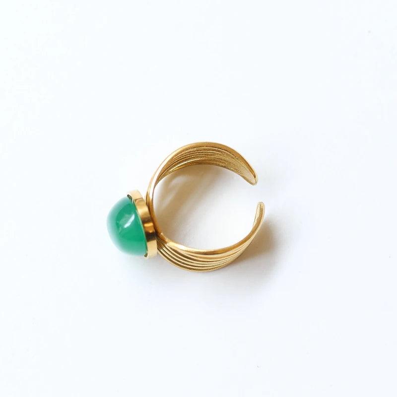 Découvrez cette bague en Agate verte assemblée à la main à Paris par Christine, créatrice de Mahny Jewelry.