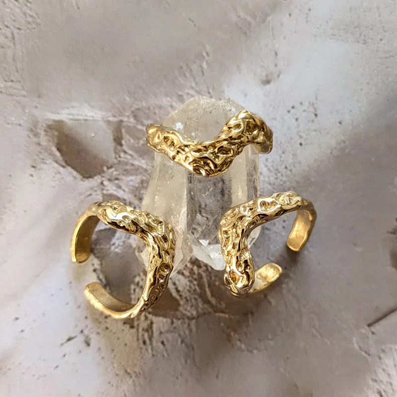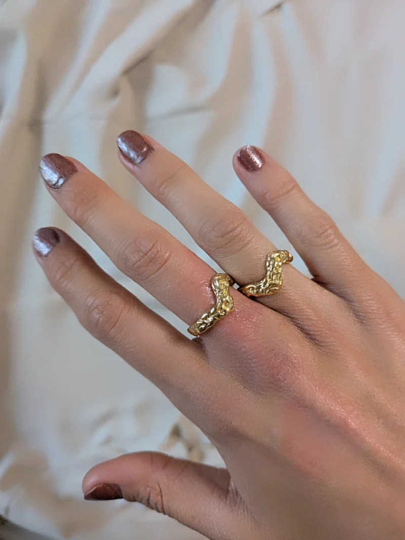 Bague vague or martelé – L’Aigua, bijou artisanal inspiré de la Méditerranée