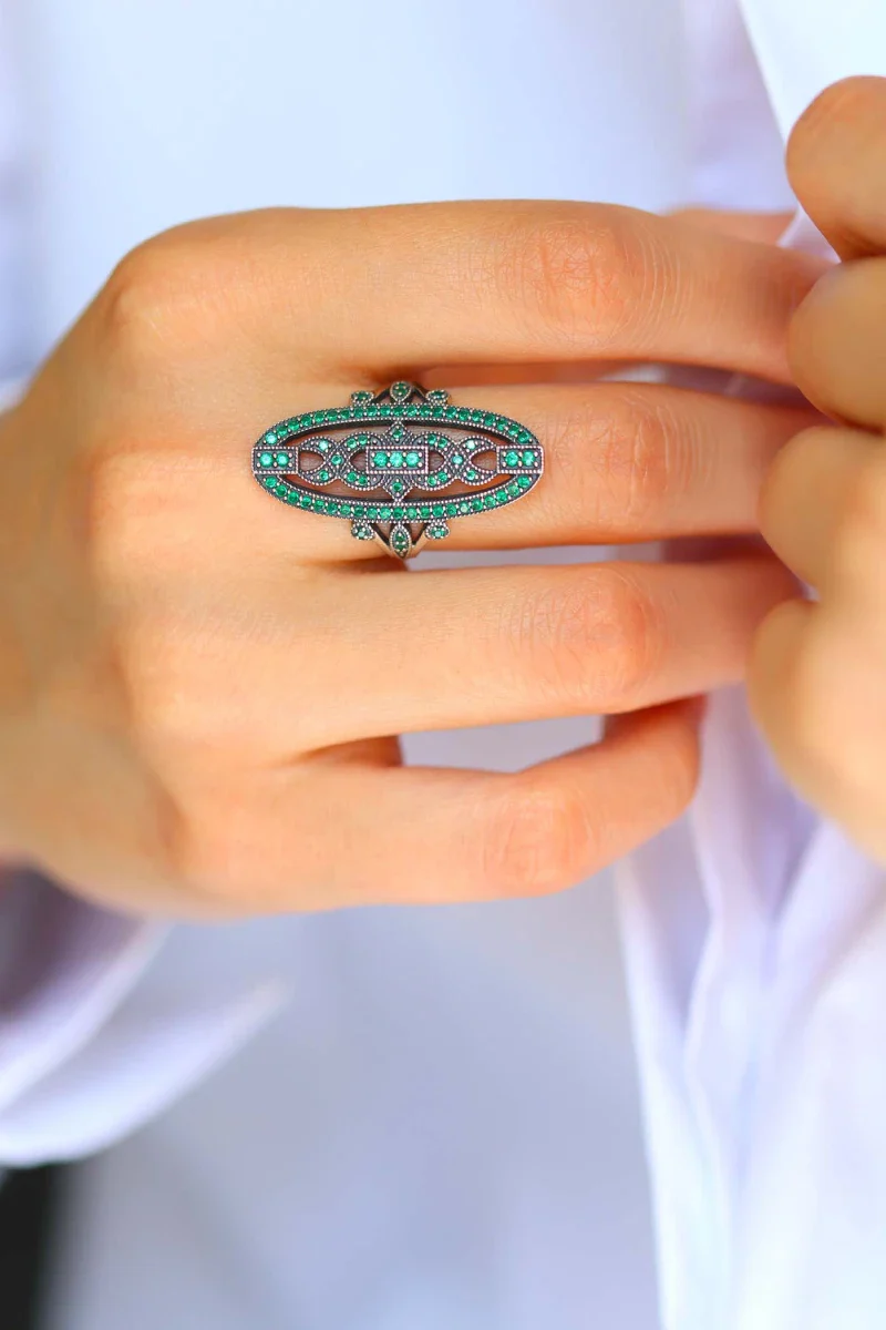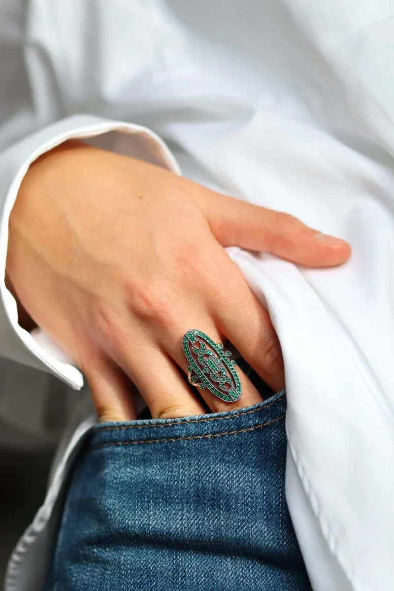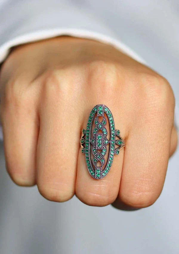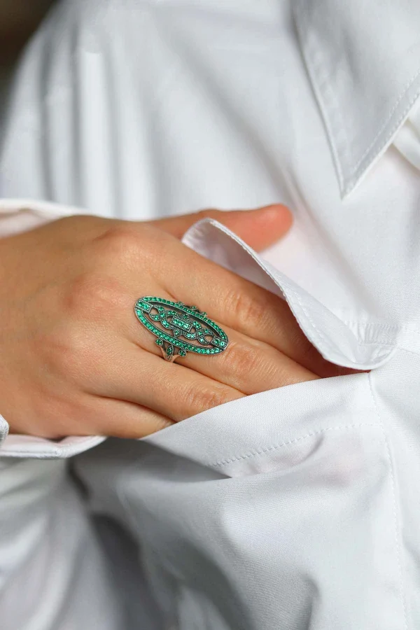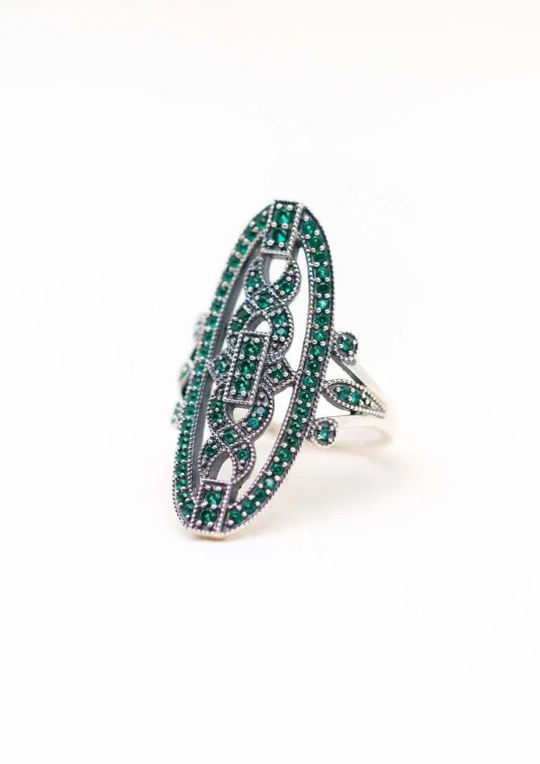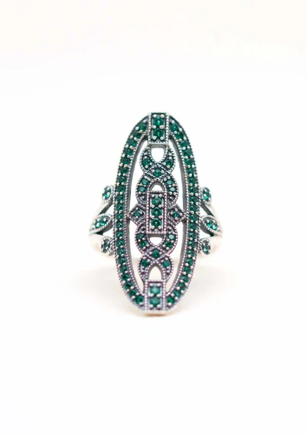 - Bague en argent massif 925 millièmes et oxydes de zirconium. Légère patine pour un look vintage.