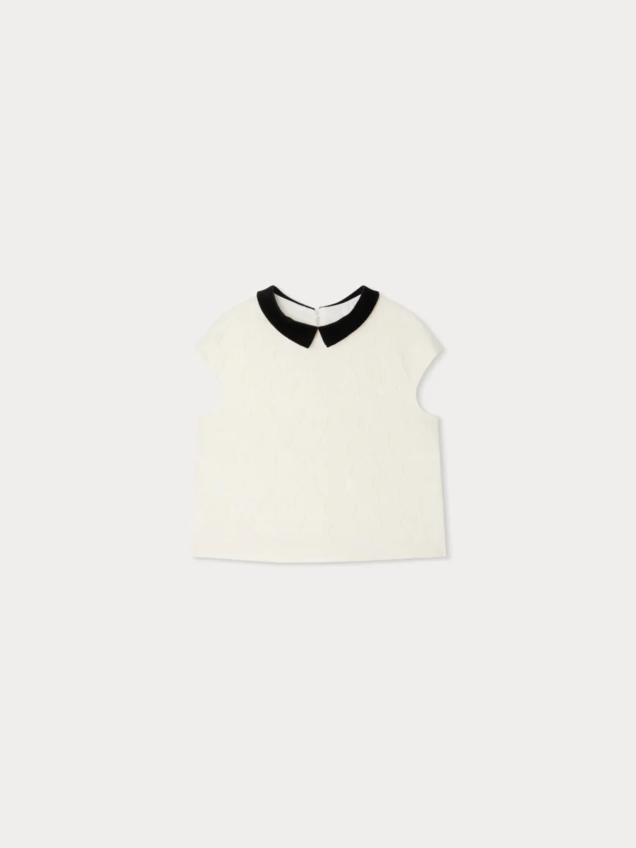 Le top Twinkle pour fille permet de composer une tenue raffinée moderne. Il se démarque par ses motifs cœurs en jacquard et son col contrastant en velours.