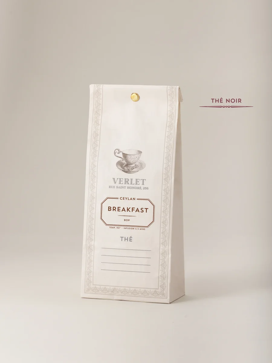 Ce mélange exclusif réunit des crus de Ceylan en feuilles brisées, sélectionnés pour leur puissance et leur richesse aromatique. La liqueur, d’un cuivré profond, dévoile une belle charpente aux notes boisées et corsées. Véritable réinterprétation parisienne du traditionnel English Breakfast Tea, ce thé du matin accompagne à merveille les petits-déjeuners, avec ou sans nuage de lait.