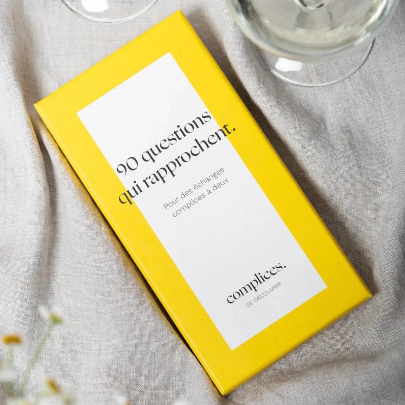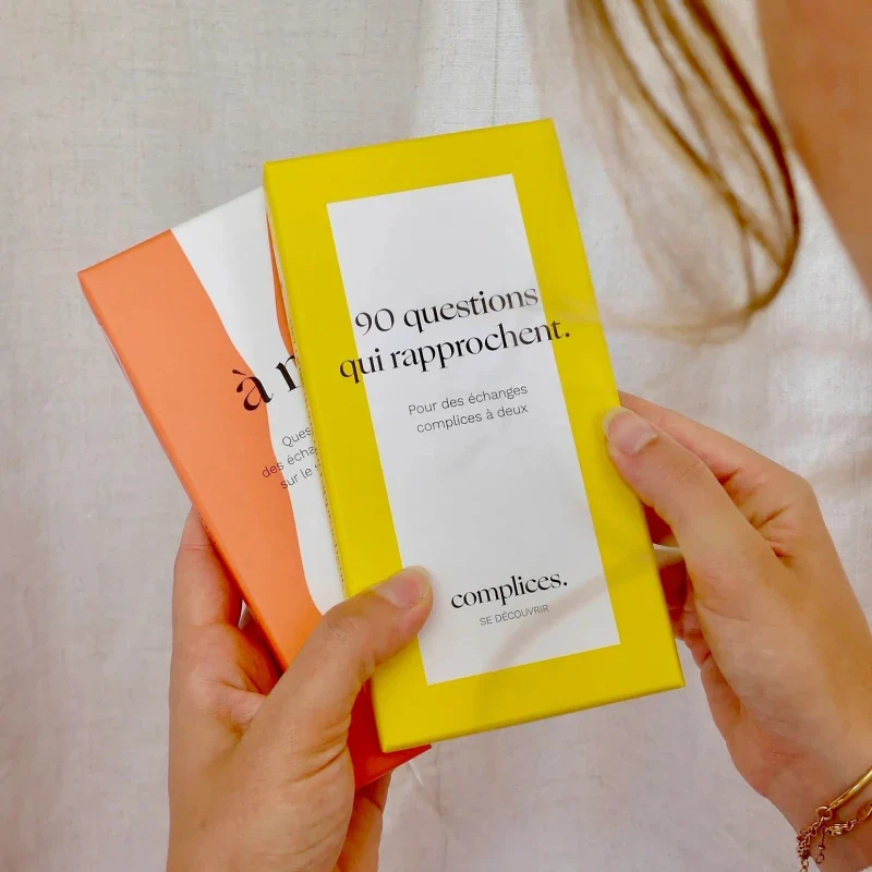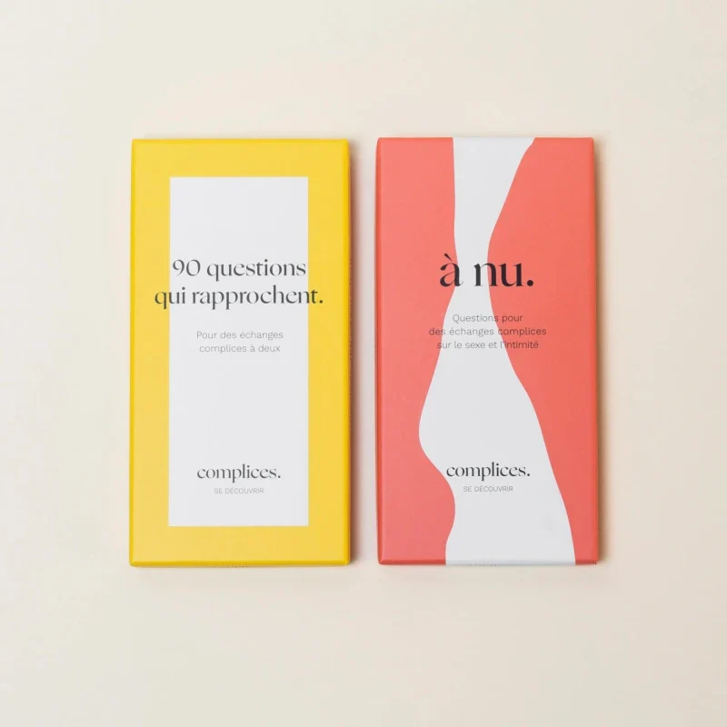 Coffret 2 jeux de cartes 90 questions pour mieux se connaître Offre duo : 90 questions pour mieux se connaitre et 90 questions pour un couple à nu. La marque Complices vous invite à faire preuve de courage. Et c’est précisément ce qui motive notre offre duo : 90 Questions + à nu. Tandis que […]