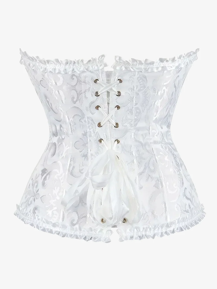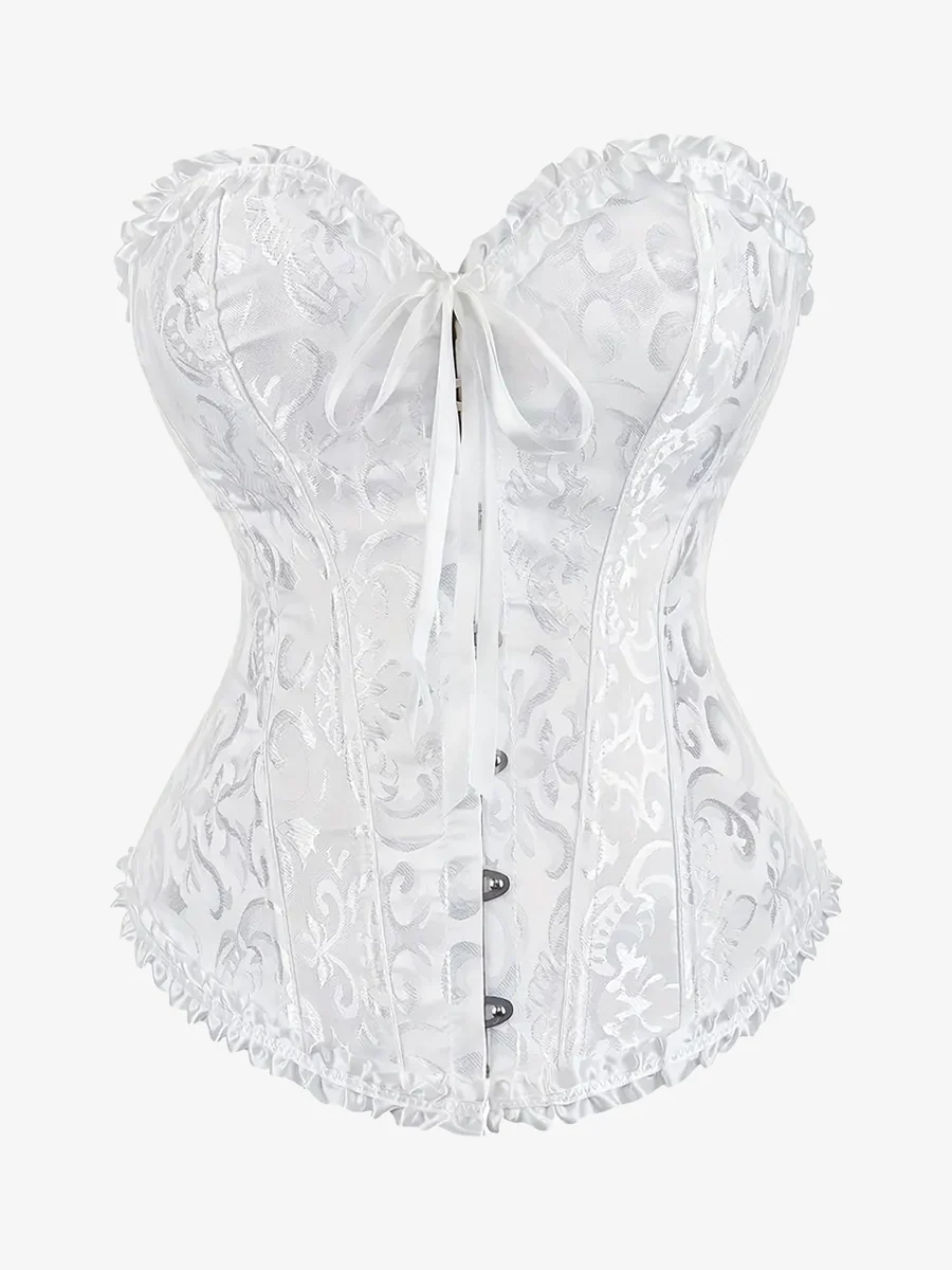 Offrez-vous un look vintage sexy en enfilant ce corset blanc victorien. Décoré d’un discret motif floral de part en part et d’un joli nœud à l’avant, ce corsage est également doté d’un busc en métal et d’un laçage au dos afin que vous puissiez en ajuster le serrage.