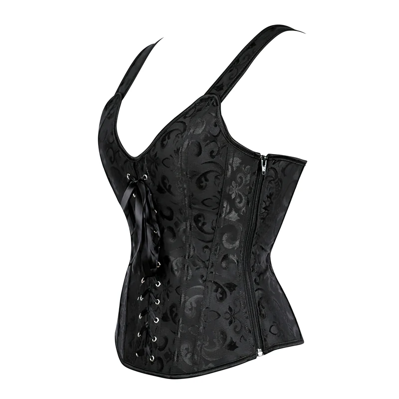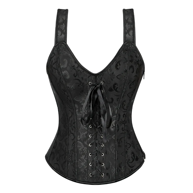 Découvrez l’élégance intemporelle avec notre corset bustier noir à bretelles. Conçu avec des baleines souples et un laçage ajustable, ce corset promet un confort inégalé du matin au soir, s’adaptant harmonieusement à votre silhouette. L’enfilage et le retrait sont simplifiés grâce à une fermeture à glissière discrète, tandis que la durabilité des matériaux de qualité assure que ce corset devienne un incontournable de votre garde-robe pour de nombreuses années. Mais au-delà du confort et de la durabilité, ce corset est une célébration de la féminité. Il sublime votre silhouette, accentuant délicatement votre taille et valorisant votre poitrine pour vous offrir une allure féminine et confiante. Le motif à volutes subtil et le laçage décoratif vous permettent d’exprimer votre style unique. En portant ce corset, vous embrassez une réappropriation corporelle qui transcende la norme, vous permettant de vous défaire des jugements, de vous démarquer avec élégance et de rejoindre une communauté de femmes audacieuses et émancipées.