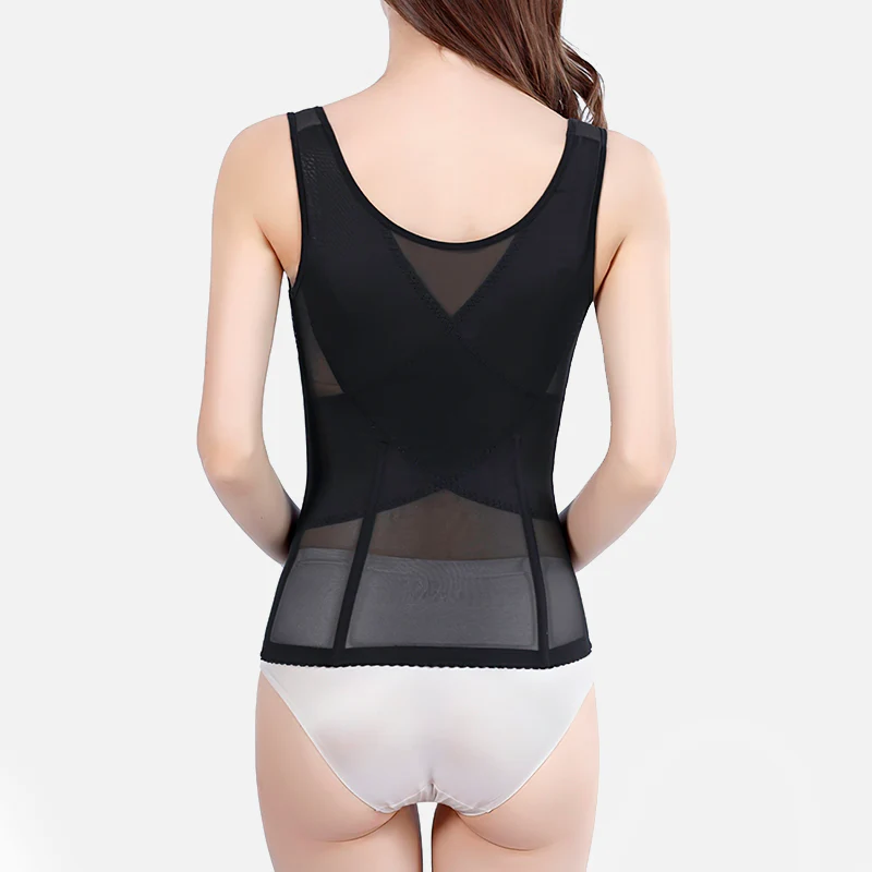 Sculptez votre silhouette confortablement grâce au matériau respirant qui compose ce gilet minceur noir. Doté de baleines en acier pour une meilleure réduction du tour de taille, sa fermeture à crochets vous permettra d’en ajuster la compression. Ses bretelles assureront un meilleur maintien à ce gilet qui mettra également en avant votre poitrine.
