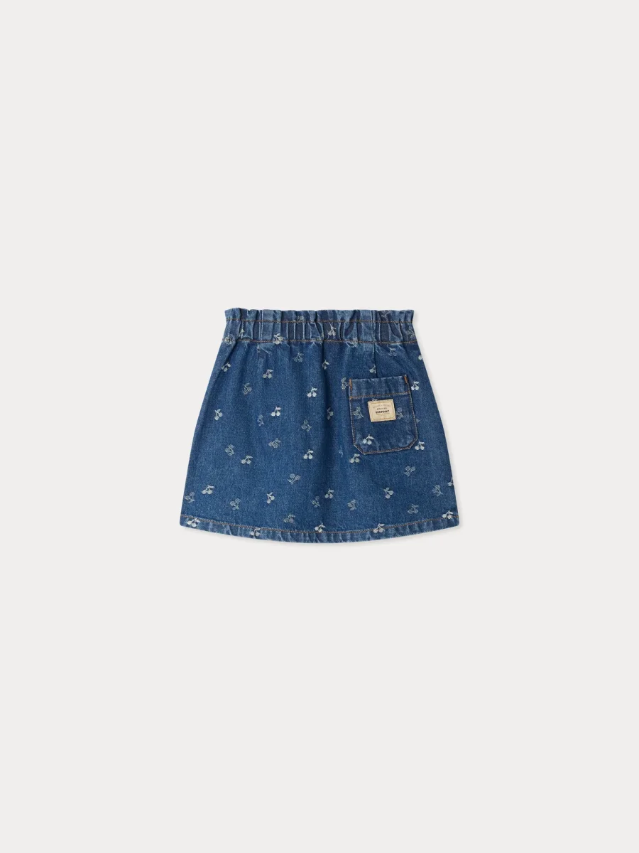 La mini jupe Jensua pour fille revisite la jupe en jean avec son jacquard cerise. Sa poche plaquée au dos s’agrémente d’une étiquette logo contrastante.