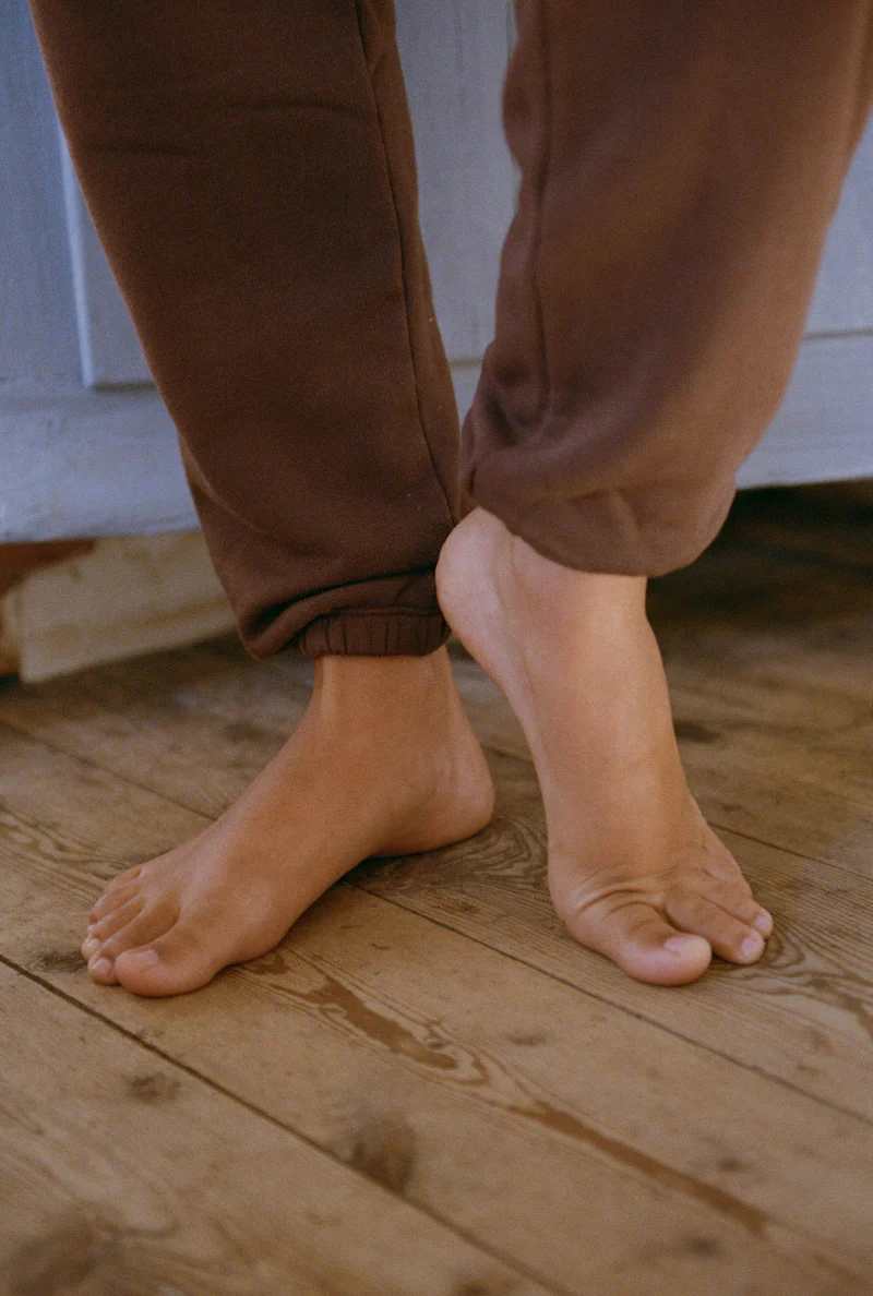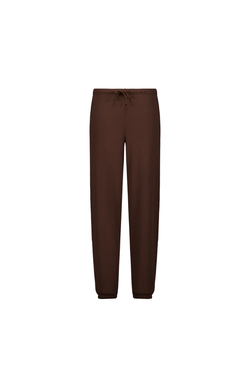 Le pantalon Junko revient dans une nouveau molleton, ultra-doux et confortable. Il est associé à un marron chaud, très Nénés.