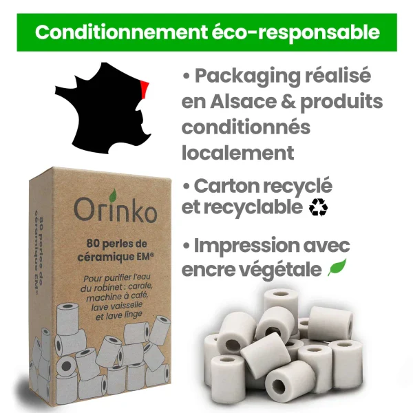 Lorsqu’elle sort du robinet, l’eau contient des produits chimiques et des métaux lourds. Elle laisse aussi un goût désagréable en bouche qui pousse à acheter de l’eau en bouteille. Économiques et écologiques, les perles de céramique x80 permettent de purifier l’eau du robinet en filtrant le chlore et les résidus de produits polluants. Adopter les perles de céramique grises EM®, dont la durée d’utilisation atteint 10 ans lorsqu’elles sont bien entretenues, contribue à générer d’importantes économiques. C’est aussi un choix responsable qui permet de réduire l’usage et la mise au rebus des bouteilles en plastique. Les perles de céramique grises x80 allongent également la vie des appareils électroménagers.