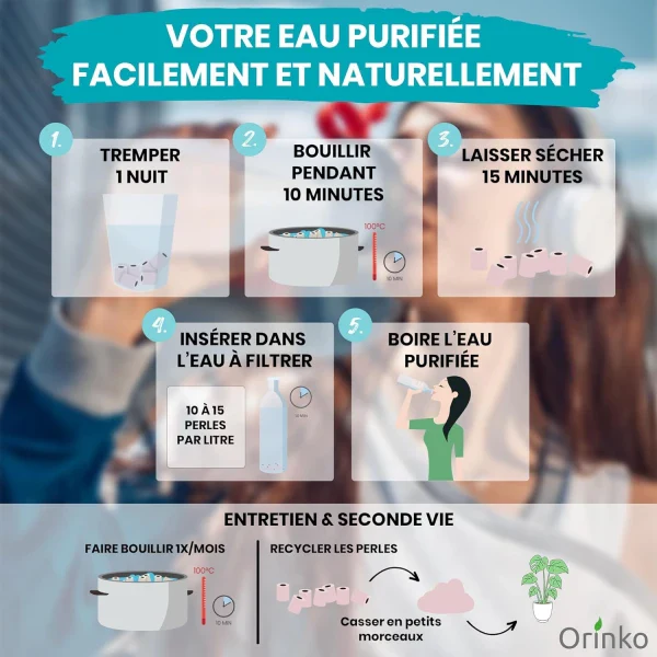 Comme les charbons actifs, les perles roses de céramique x25 adsorbent les produits chimiques et les métaux lourds. Produit 100% naturel, elles sont également recyclables et zéro déchet puisqu’elles permettent de se passer des bouteilles en plastique.