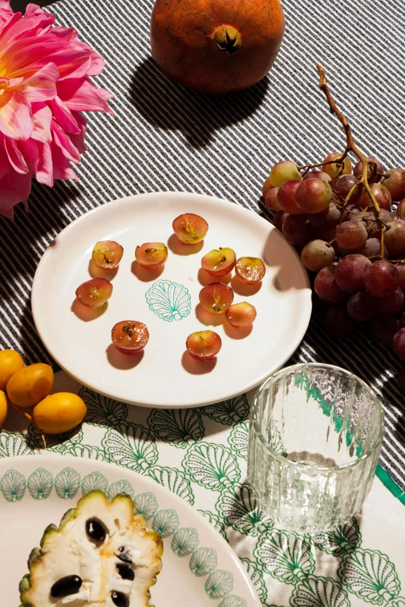 Les assiettes en céramique sont fabriquées en collaboration avec ARC EN CIEL, une ONG libanaise travaillant avec des personnes handicapées. Elles sont adaptées au micro-ondes et au lave-vaisselle.