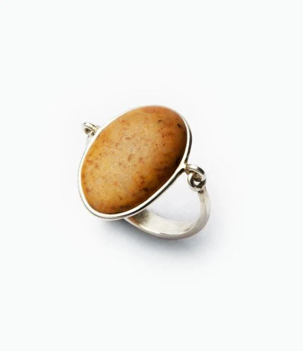 Une bague en argent, ornée d’un galet précieux, évoquant la tranquillité des rivières et la force tranquille de la nature. Un bijou qui célèbre l’harmonie entre l’artisanat et les éléments naturels, capturant l’essence de l’élégance intemporelle.