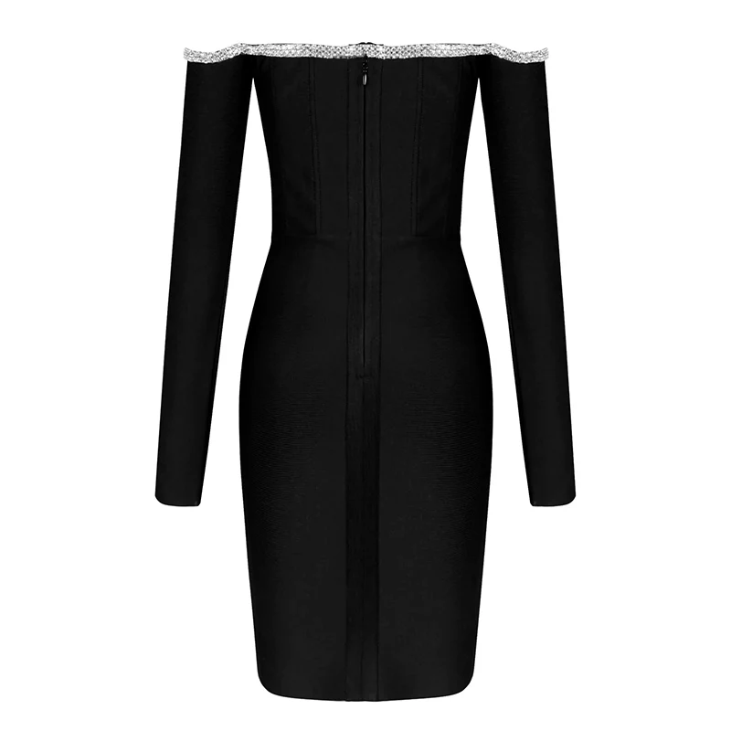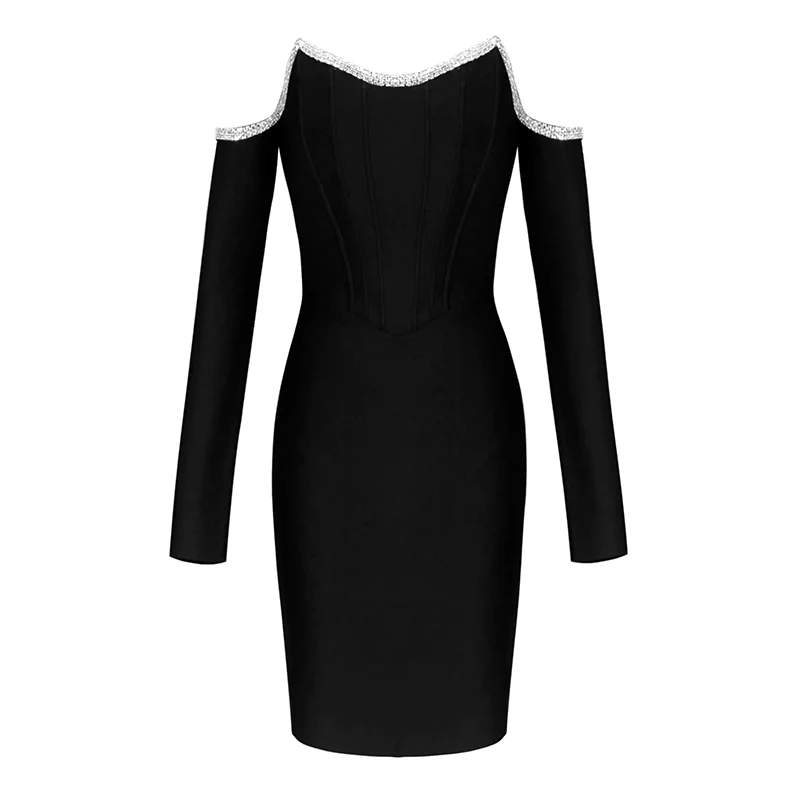 Robe corset Col bateau Manches longues Finition diamantée Coupe courte Adoptez cette robe cocktail avec corset et manches longues Portez cette robe cocktail avec corset et manches longues noire afin d’illuminer votre silhouette. On adore sa finition diamantée rehaussant son col bateau. Une fermeture à glissière à l’arrière facilitera son enfilage.