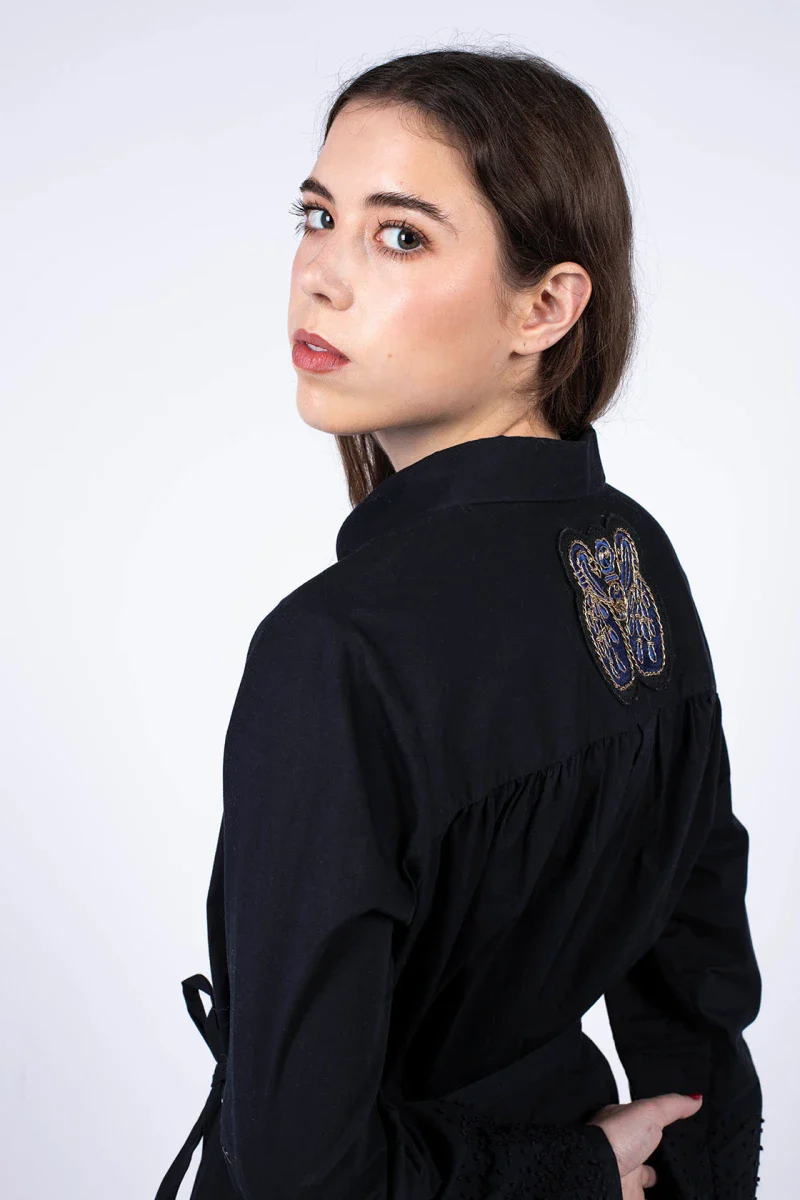 - Broderies sur les manches et dans le dos confectionnées à la main grâce au savoir-faire ancestral Indien