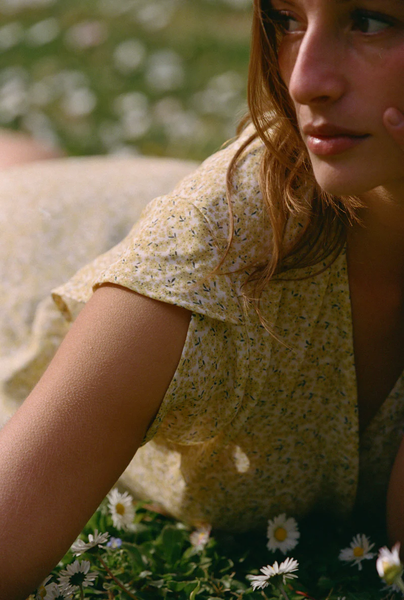 Elle existe dans un joli imprimé fleuri jaune et vert qui évoque le retour des beaux jours. La robe Inès est également disponible dans un joli Terracotta qui sublime toutes les carnations.