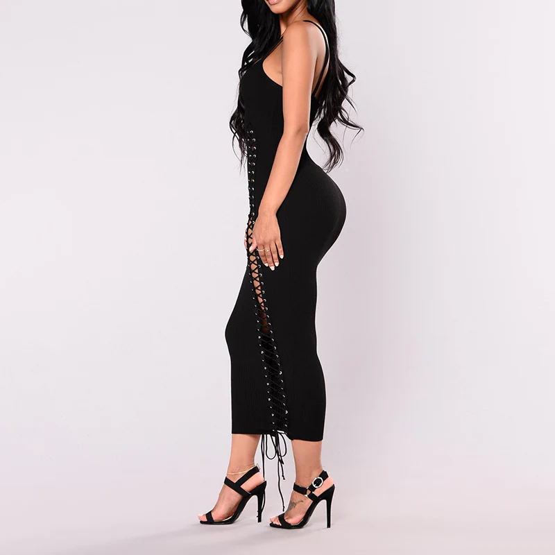 Cette robe longue corset noire dotée de fines bretelles soulignera sensuellement votre silhouette en rendant visible une partie de vos formes à travers un double laçage présent à l’avant. Pour compléter votre look, enfilez une jolie paire d’escarpins ton sur ton.