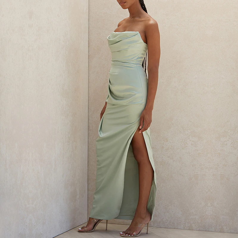 Robe longue corset verte style bustier à jambe fendue