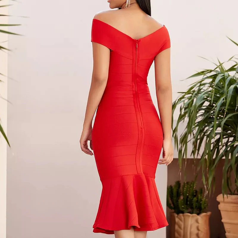 Robe bustier Coupe sirène Encolure bateau Fermeture à glissière au dos Craquez pour cette robe sirène rouge bustier Adoptez un look plein de grâce en portant cette robe bustier rouge et sa coupe sirène. On apprécie en particulier l’encolure bateau, la fermeture à glissière au dos et les bandes horizontales rehaussant l’esthétique de cette robe.