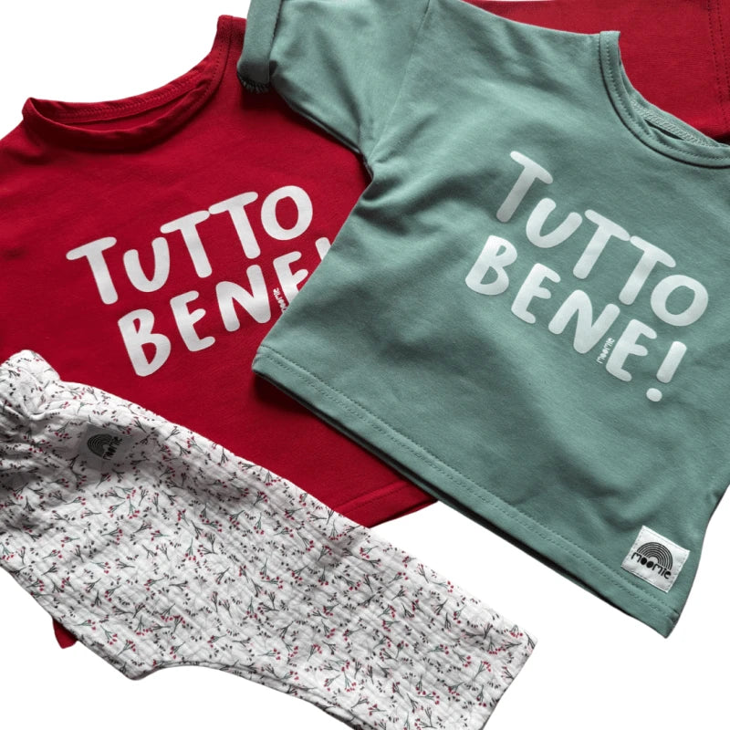 Découvrez un sarouel doux et confortable pour votre bébé, idéal pour les journées ensoleillées. Son imprimé floral rendra chaque sortie encore plus charmante. Il s’associe parfaitement avec le T-shirt vert d’eau ou le T-shirt rouge de la Collection « Tutto Bene ».
