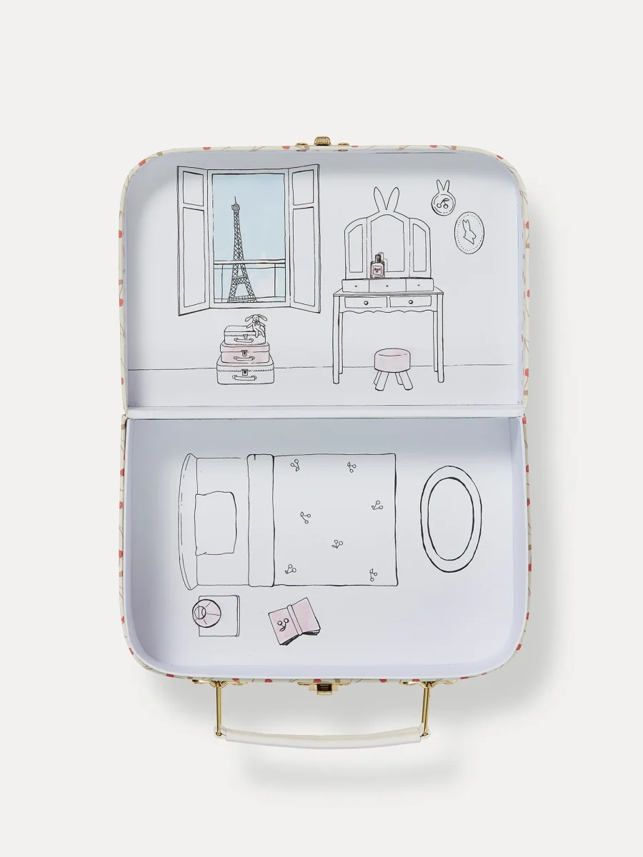 Dans cette valisette décorée de petites cerises craquantes, retrouvez l’iconique Eau de Senteur Bonpoint dans son flacon laqué rose aux côtés d’un petit lapin brun. À l’ouverture, découvrez le coloriage personnalisable pour votre enfant.
