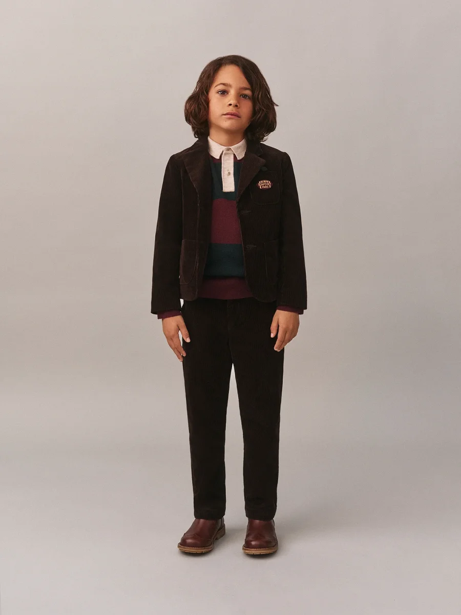 La veste Tomas pour garçon revisite l’intemporel velours côtelé. Ce modèle uni s’agrémente d’un écusson ballon de rugby coloré sur la poche plaquée sur la poitrine. Deux autres poches devant garderont les petites mains au chaud. La doublure satinée contrastante renforce son élégance.